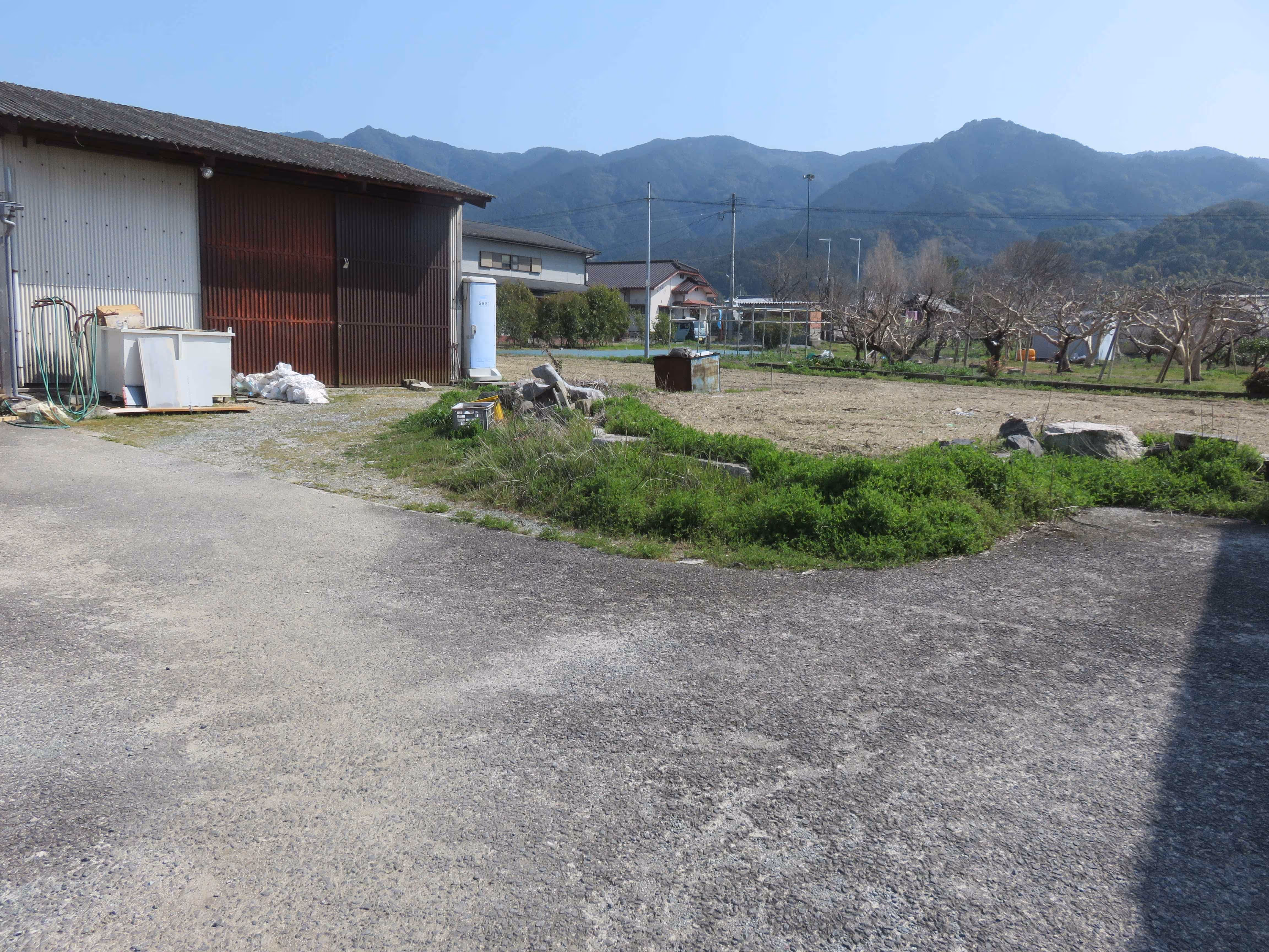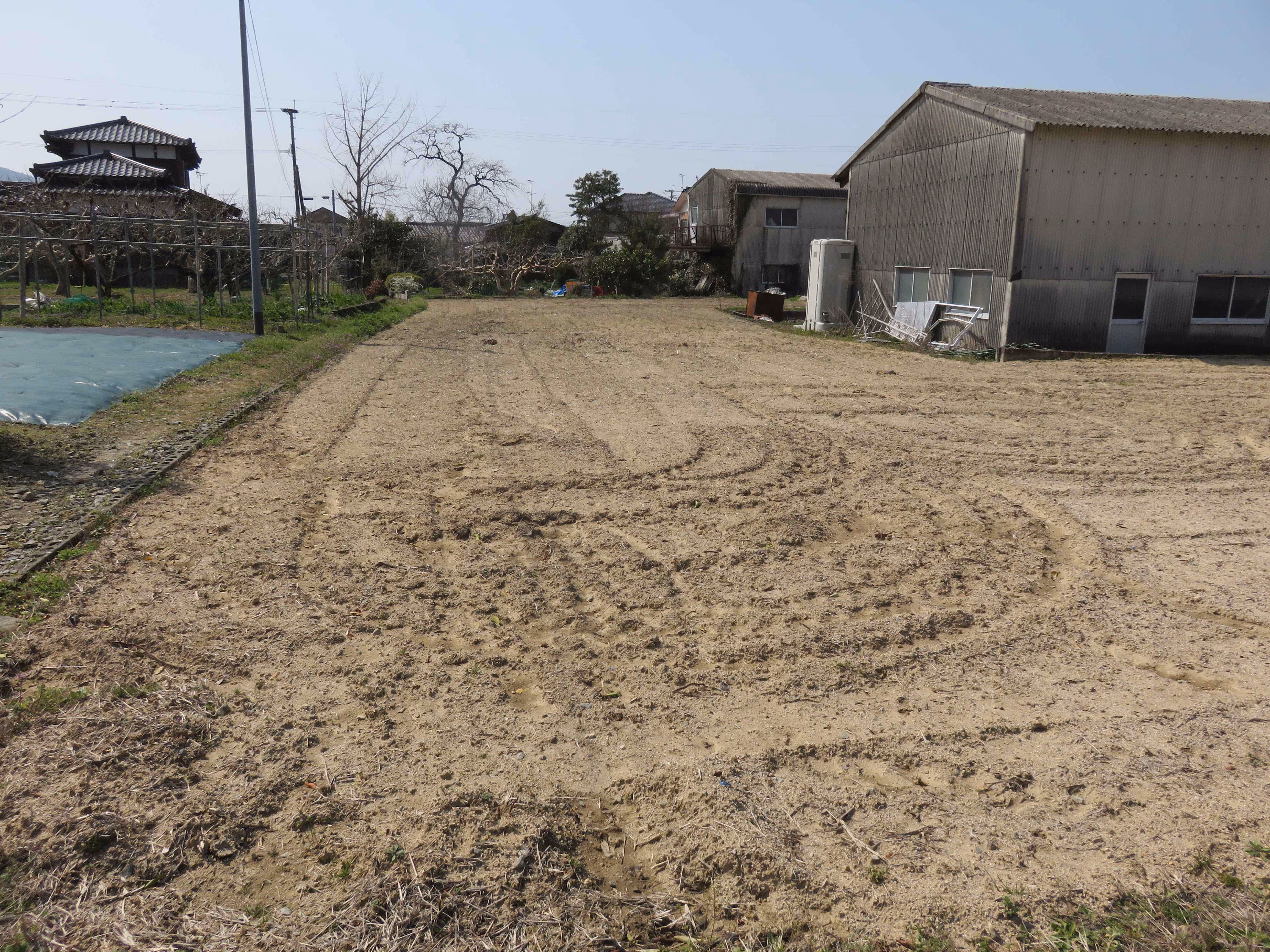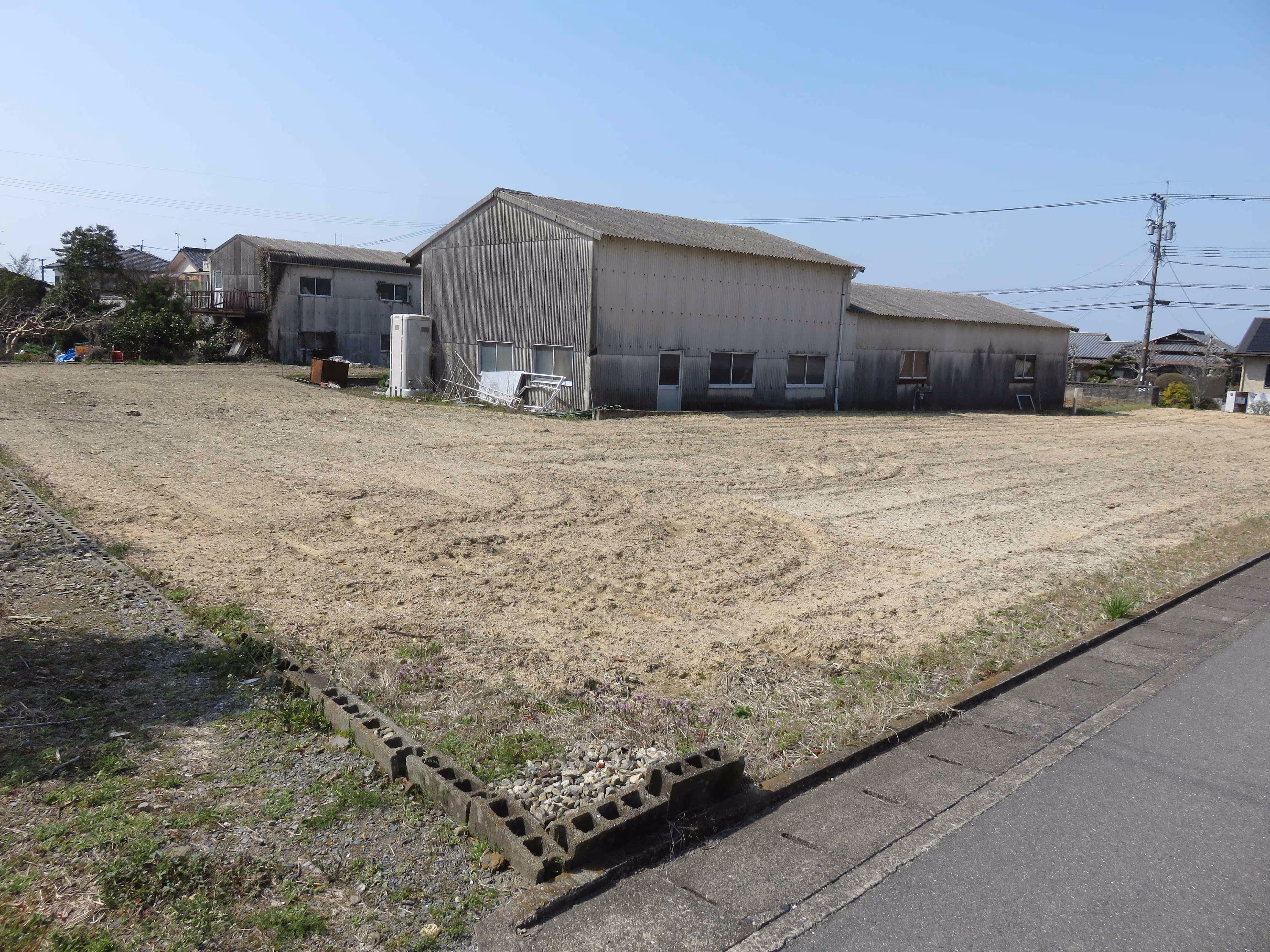 正方形に近い形の良い土地。さらに506坪の広さで、県道沿い。倉庫付き。