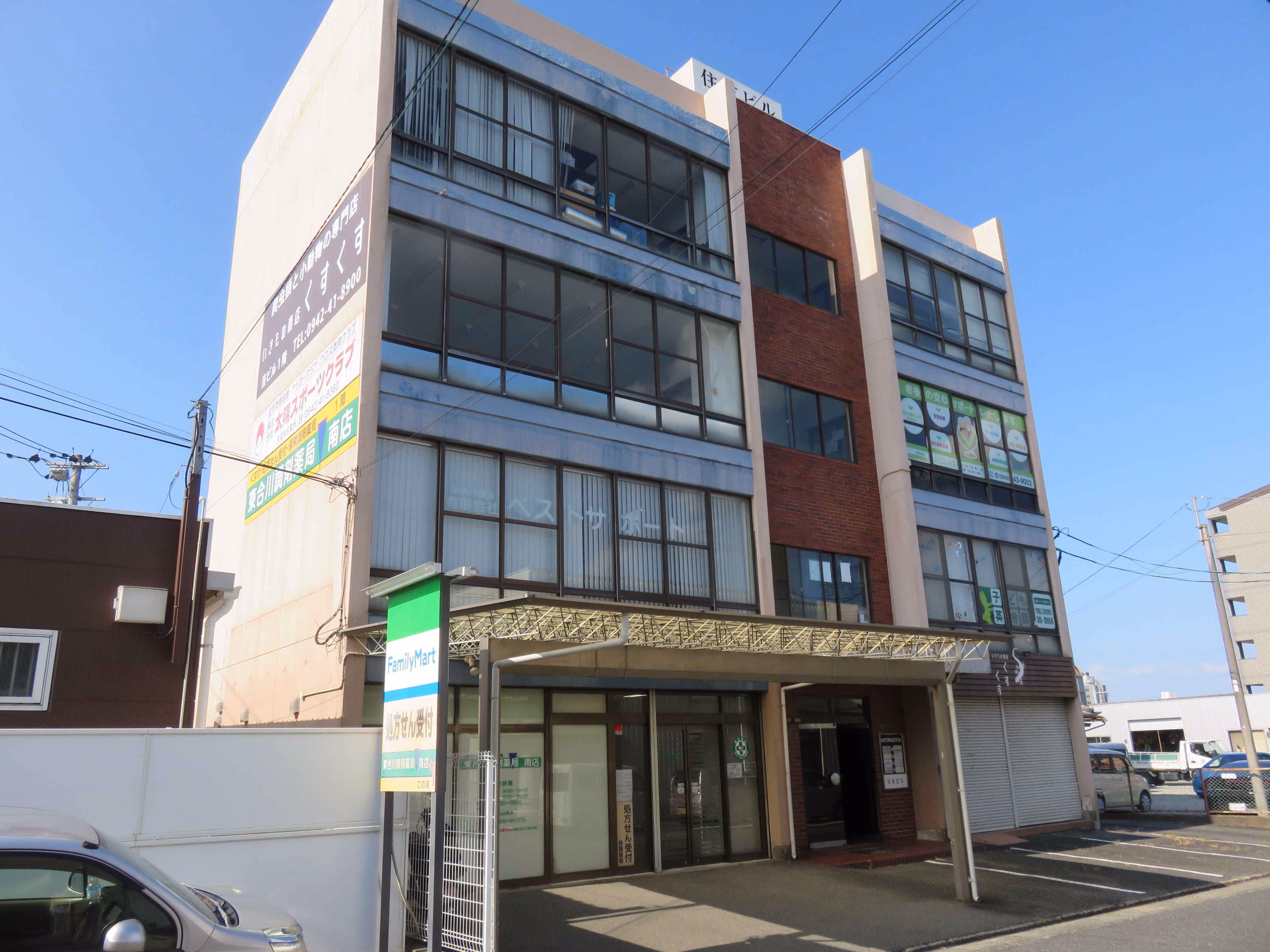 九州自動車道久留米IC料金所から約550m。事務所・店舗4階建て。敷地内駐車場あり。